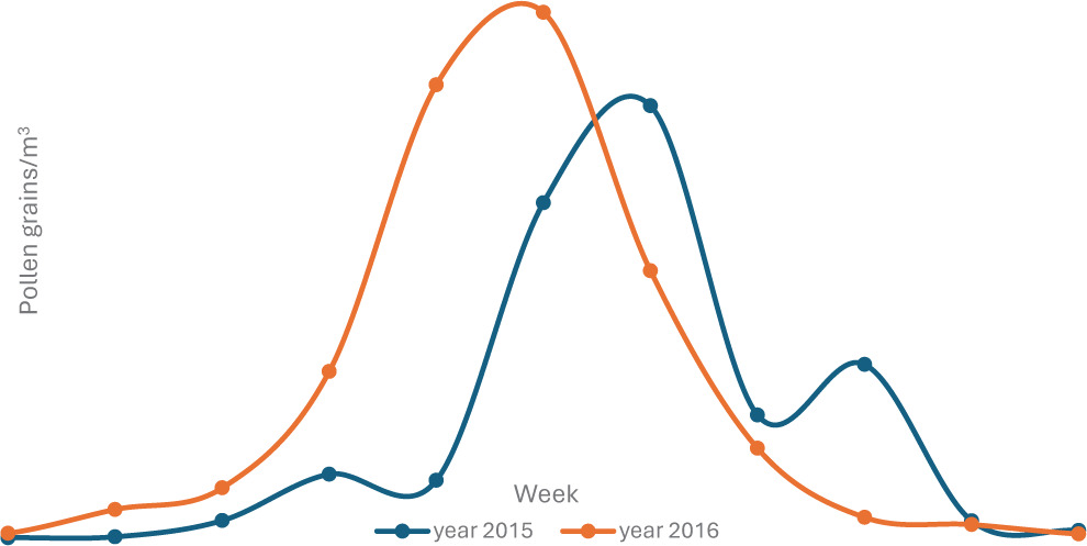 Figure 1 Counts of pollen grains during 2015 and 2016.