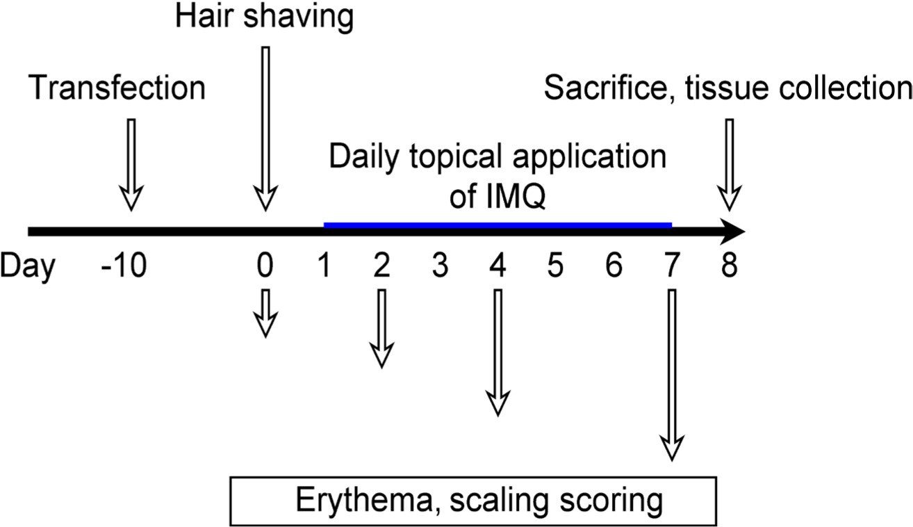 The severity of psoriasis in IMQ-treated mice was evaluated using PASI. PASI scores were recorded on days 0, 2, 4, and 7.
