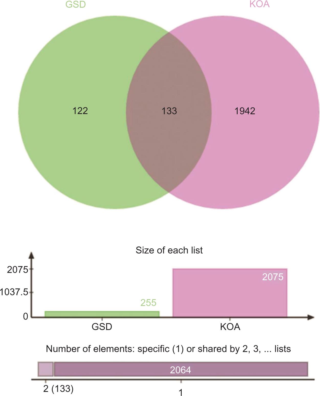 Figure 2 Venn diagram of GSD- and KOA-related targets; 133 common targets were obtained.
