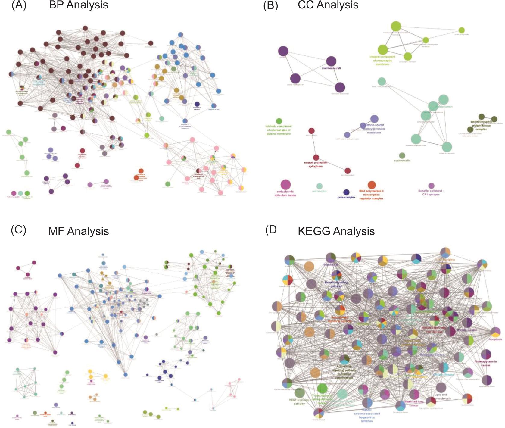 The Clue GO in Cytoscape was applied to carry out GO and KEGG pathway-enrichment analysis of common targets. The species was limited to “Homo sapiens.” Items with P < 0.05 were selected for further study.21