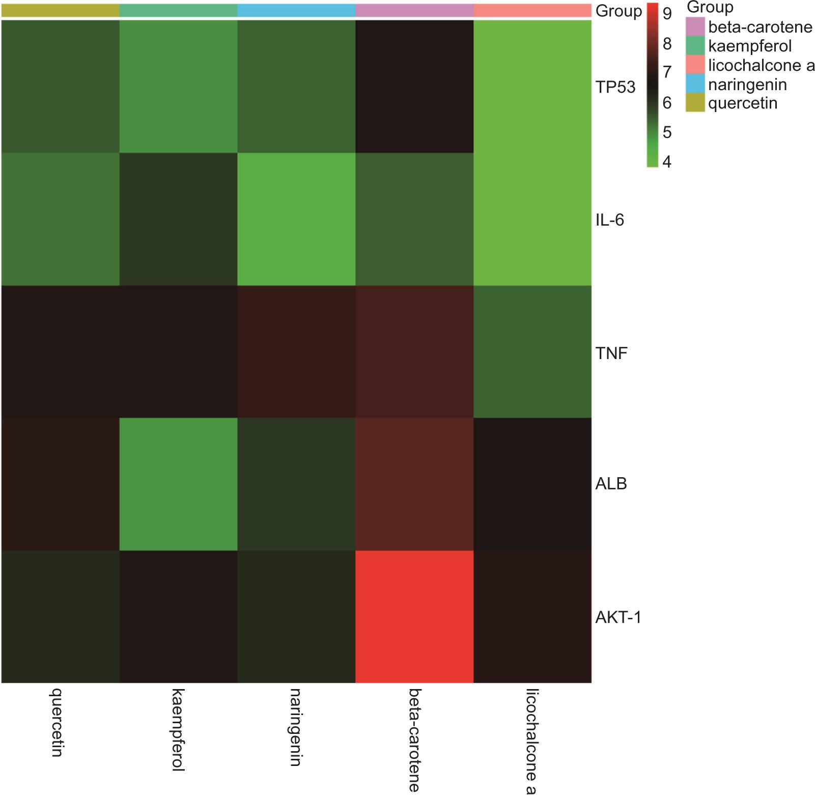 β-carotene | C40H56 | 536.9 | IL-6 | −5.45 |