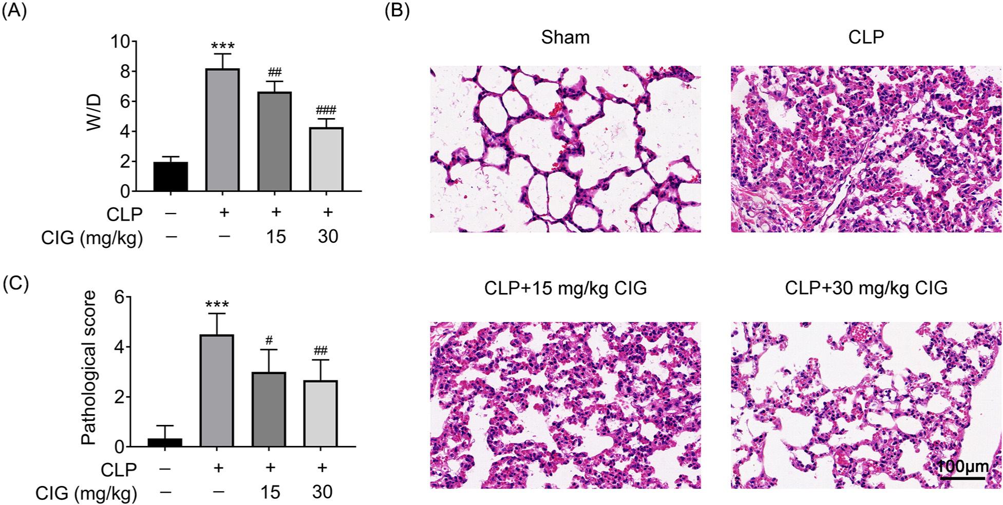 Therefore, the effect and potential mechanism of CIG on mice with sepsis-induced ALI was investigated. The present study provides a theoretical foundation for the clinical development of ALI therapy.