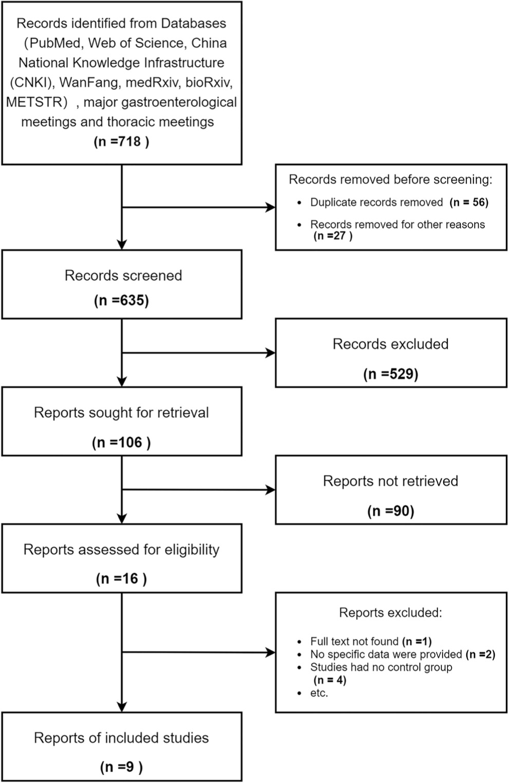 To locate pertinent research, literature searches were carried out in the following databases: PubMed, WanFang, BioRXiv, China National Knowledge Infrastructure (CNKI), Web of Science, METSTR, and MedRxiv. Additionally, major allergy conferences, such as the World Allergy Organization, Eurasian Respiratory and Allergy Consortium, American Academy of Allergy, Asthma, and Immunology, European Academy of Allergy and Clinical Immunology, were referred. Major nasal conferences, such as American Rhinologic Society, European Rhinologic Society, and major gastroenterological meetings such as the European Joint Gastroenterological Week, American Gastroenterological Association, and Digestive Disease Week were included along with thoracic meetings such as the European Respiratory Society, American Thoracic Society, and American College of Chest Physicians. The retrieval period was from database inception to July 2023, and either Chinese or English was used as the publication language.