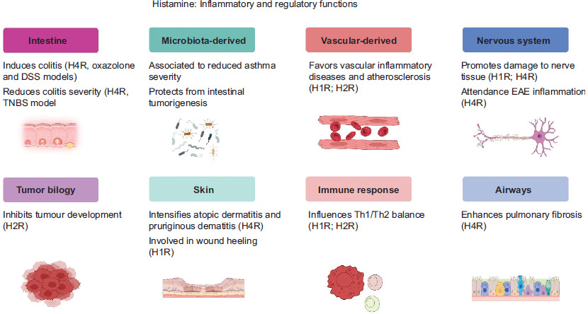 Figure 1 Histamine plays both inflammatory and regulatory roles across various biological systems.
