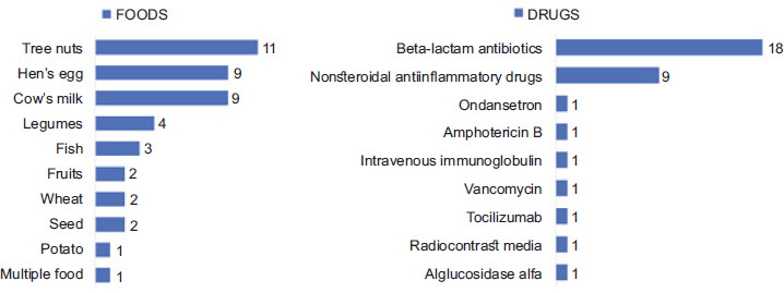 Another common cause of anaphylaxis is drugs. In the context of previous research on anaphylaxis in the pediatric population, DIA ranged widely from 5% to 33%.9 BLAs were the main causative agents in children with DIA in our study, a finding consistent with prior studies in children.9,12 Nonetheless, some studies revealed that NSAIDs were the most prevalent causative drugs.19,20 In the present study, in the category of drug allergies, the most prevalent trigger factor was identified as BLAs, followed by NSAİDs.