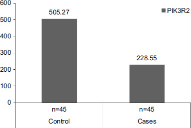 | PIK3R2 | 45 | 505.27 | 66.6 | 45 | 228.55 | 127.4 | |