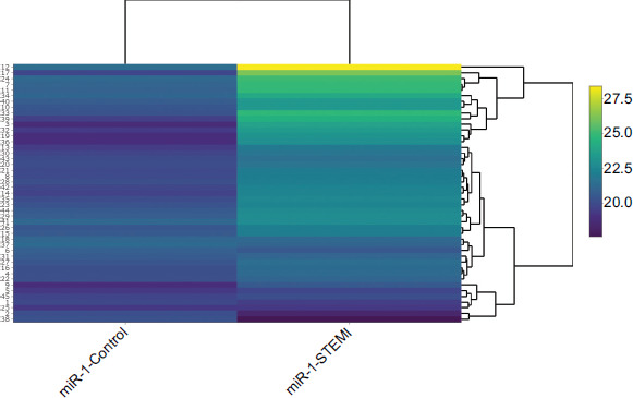 Figure 6 Differential expression of miR-1, as indicated by Ct values, between STEMI and Control.