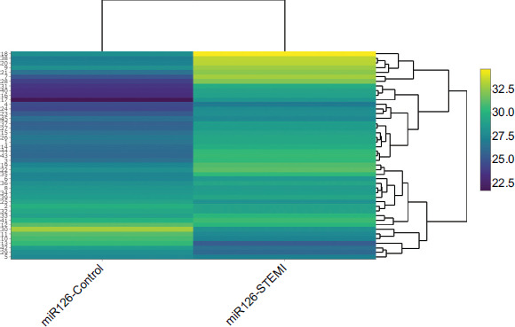 Figure 7 Differential expression of miR-126-5p, as indicated by Ct values, among STEMI and Control Samples.