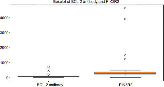 Figure 10 Multiple comparisons between each pair of BCL2 and PIK3R3 proteins among STEMI.