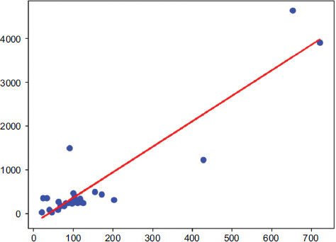Figure 9 Linear regression model of BCL2(X-axis) and PIK3R3(Y-axis) among STEMI.