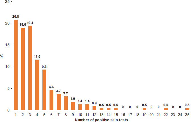 Figure 1 Distribution of allergic sensitization according to the number of allergens.