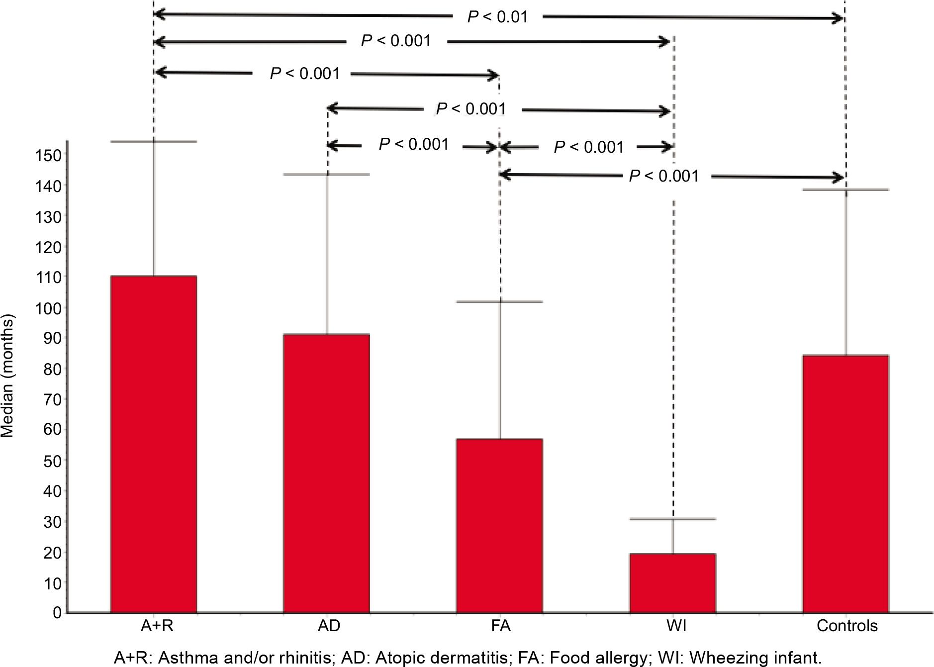 A+R: Asthma and/or rhinitis, AD: Atopic dermatitis, FA: Food allergy, WI: Wheezing infants.