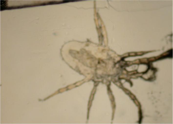 Figure 2 Dermanyssus gallinae found by the patient, observed under light microscopy.
